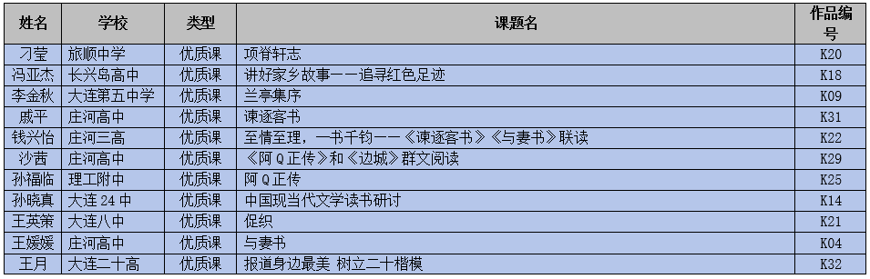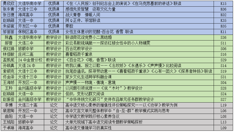 根据辽宁教育学院2024年9月30日的《关于组织开展辽宁省普通高中优秀课、优秀论文及教学设计评比活动的通知》要求,本着公正公平的原则,我们组织了大连地区推荐评选活动,经过报名、作品上传及评选,拟推荐以下作品参加省优秀课、优秀论文及教学设计评比,特公示名单如下: