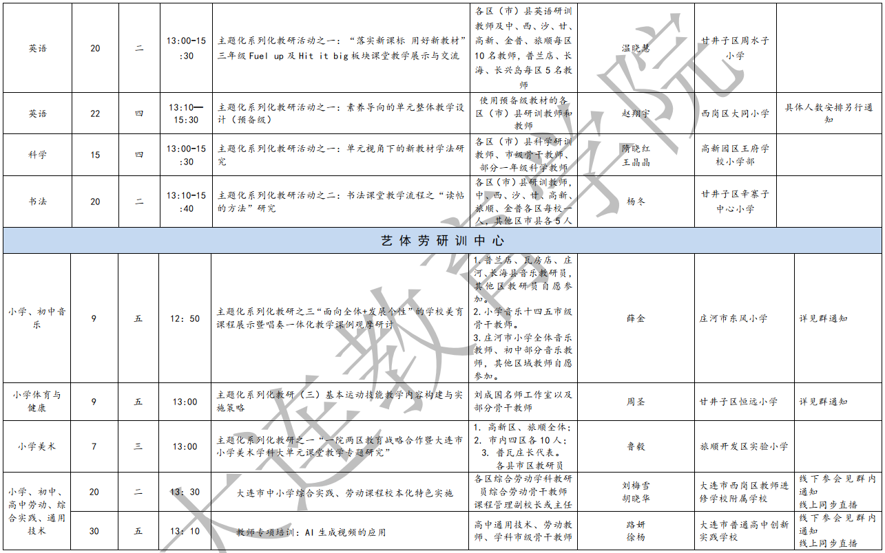 4.艺体劳研训中心5月教研活动计划