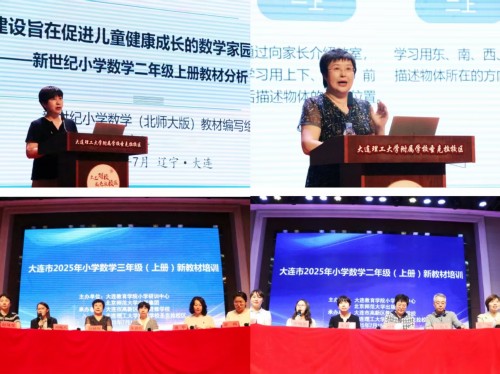 7月15-16日,大连市小学数学二、三年级新教材培训在大连理工大学附属学校圣克拉校区举办。本次培训由大连教育学院和北京师范大学出版集团联合主办,高新区教师进修学校和大连理工大学附属学校圣克拉校区承办。大连教育学院小学研训中心副主任刘稀凤、高新区教师进修学校校长郭红君、大连理工大学附属学校圣克拉校区校长孙永利、市区数学研训教师及全市1400余位数学教师参加现场活动,2200余位数学教师在线观看了直播。