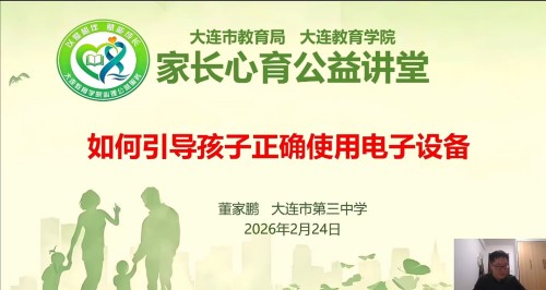 公益讲堂精准对接不同年级家长需求,设置差异化专题内容。大连教育学院心理研训中心尹小磊老师以《助力高三,家长如何有效陪伴孩子?》为主题,面向高三家长开展讲座,围绕备考阶段学生心理压力大、情绪易波动等特点,指导家长掌握专业陪伴策略,助力缓解孩子的考前焦虑,营造积极的备考氛围。大连第三中学董家鹏老师以《如何引导孩子正确使用电子设备》为主题面向高一高二家长开展讲座,引导家长摒弃对电子设备的“恶魔化”认知,帮助家长采用科学方法引导孩子合理使用电子设备,避免过度依赖与沉迷,守护孩子心理健康。两位专家结合多年教学经验,通过丰富案例为家长们提供了具体可操作的指导方案,受到家长的一致好评。